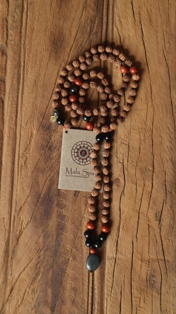Für die ‚Rote Jaspis und Obsidian Mala Kette‘ werden unsere Rudraksha Mala Perlen mit Perlen aus Roter Jaspis und Obsidian kombiniert. Die Mala wird mit einem Obsidian Anhänger vollendet.